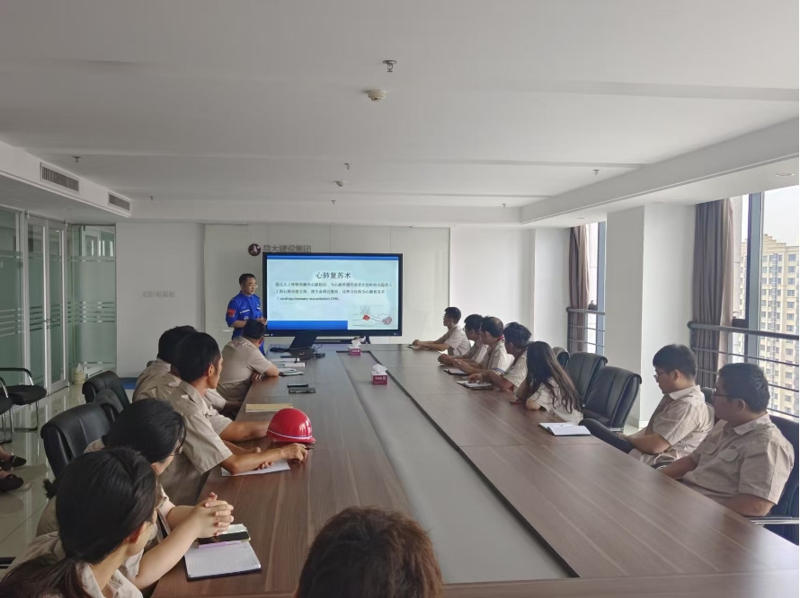 On the afternoon of June 24, 2025, to enhance the emergency response skills of all employees and implement the requirements of the "Safety Production Month" campaign with the theme "Everyone Talks Safety, Everyone Can Respond – Identifying Hidden Hazards Around Us," the Landscape Company organized "Cardiopulmonary Resuscitation (CPR)" skills training and a machinery injury emergency rescue drill at both the company meeting room and the Zhiyuan Road project site.